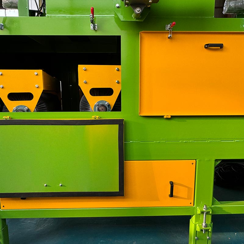 2. Abrasive Brush Rollers: Φ300/350mm DuPont filamen abrasive, independen mimpin, ndhukung loro coarse lan